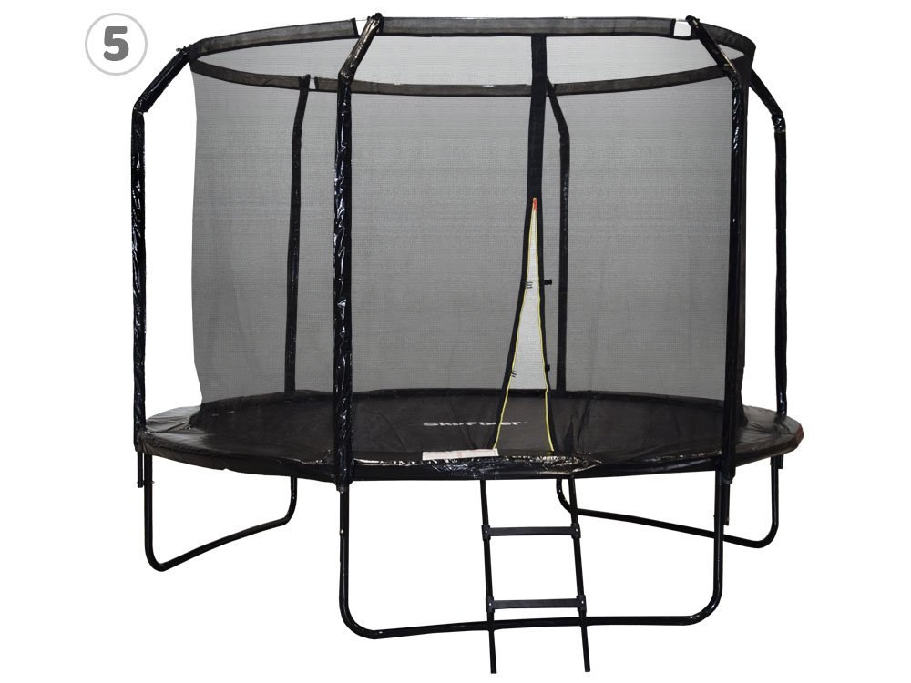 - rurki do siatki mocowane są do nóg trampoliny mocnymi śrubami