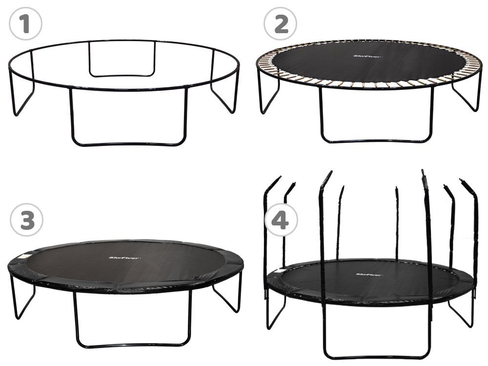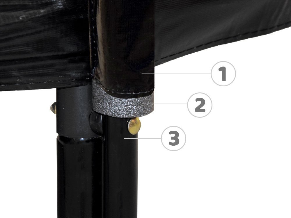 - rurki do siatki mocowane są do nóg trampoliny mocnymi śrubami