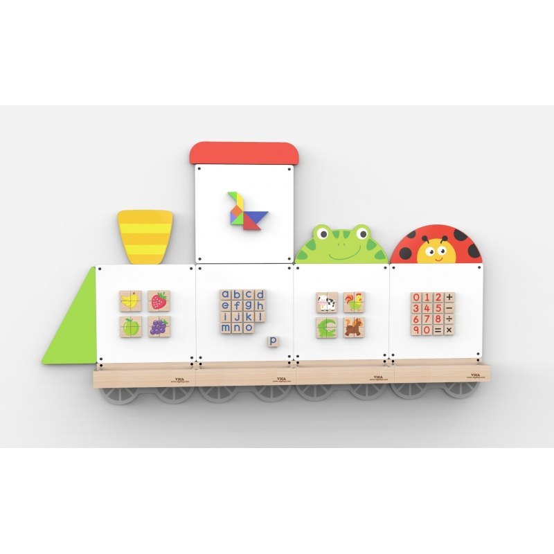 System tablic edukacyjnych od marki Viga, zaprojektowany jak kolorowy pociąg, zachęca dzieci do kreatywnej zabawy. Tablice suchościeralne i magnetyczne mogą być używane do rysowania, pisania oraz przyklejania magnetycznych liter i cyfr, rozwijając umiejętności manualne i intelektualne. Pociąg z tablicami to nie tylko narzędzie edukacyjne, ale także inspiracja do wymyślania historii i odkrywania nowych możliwości zabawy, stymulując wyobraźnię i zdolności poznawcze najmłodszych. Wbudowana półka pomaga utrzymać porządek, gwarantując, że wszystkie akcesoria są zawsze pod ręką.