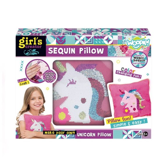 Poduszka do Ozdobienia Jednorożec od marki WOOPIE z serii ART&FUN wprowadzi dziecko w świat mody! Zestaw kreatywny dla każdego. Zestaw zawiera: poszewkę, poduszkę, cekiny, igłę i nic. Samo szycie poduszki jest proste, każdy sobie z tym poradzi - wystarczy odrobinę wyobraźni i kreatywności! Gotowa poduszka ciekawą właściwość: gdy się potrze zmienia kolor. Zestaw rozwija pierwsze zainteresowania jakim jest szycie i moda, cierpliwość, a przede wszystkim zdolności manualne!