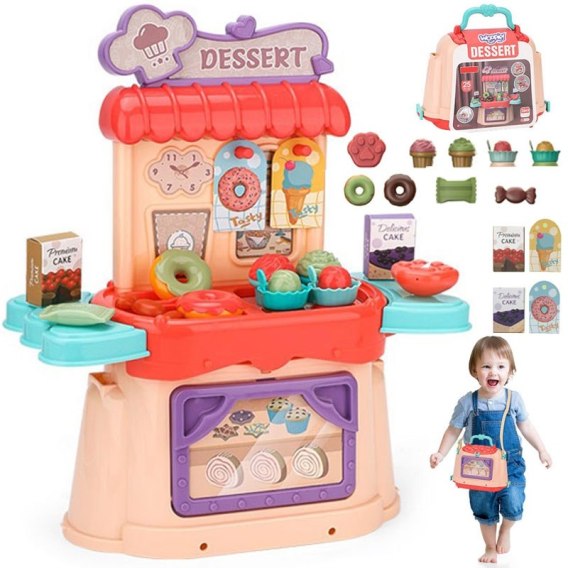 Zestaw Małego Cukiernika 3w1 od marki WOOPIE pozwoli Twojemu dziecku bawić się w szefa kuchni, sprzedawce i lodziarza wszędzie i kiedy tylko zechce! Dzieci uwielbiają pomagać rodzicom w kuchni oraz bawić się w sprzedawcę wspólnie z przyjaciółmi, dlatego to idealny zestaw dla każdego malucha. Zestaw zawiera 25 elementów: wszystkie potrzebne rzeczy, które posiada każda lodziarnia. Zabawka pełni funkcję walizki, którą można zamienić również w torbę - co pozwoli zabrać wszędzie swoją przenośną lodziarnie. Odgrywanie ról i naśladowanie rodziców/zawodów rozwija wyobraźnie i kreatywność Twojego dziecka.