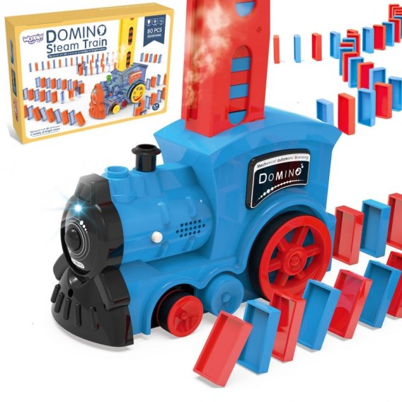 Elektryczna Ciuchcia Lokomotywa do Klocków Domino z Parą od marki WOOPIE zachwyci każde dziecko. Pociąg posiada wiele fantastycznych funkcji. Wystarczy naładować magazynek klockami, umieścić w ciuchci, wcisnąć guzik i pociąg rusza wydając dźwięk i świecąc oraz pozostawiając automatycznie za sobą klocki w układzie domino. Guzikiem można zarówno włączyć i wyłączyć ciuchcie, a kominem z góry skręcać. Wystarczy umieścić w specjalnym miejscu wodę i lokomotywa będzie również puszczała dym jak z prawdziwej lokomotywy. Młodsze dzieci lubią natychmiast przewracać klocki, natomiast starsze zaciekawi przewracanie klocków w całym efekcie domina. Zestaw zawiera aż 80 elementów. Zabawka nie tylko dostarczy świetnej zabawy, ale również uczy. Rozwija w dziecku związek przyczynowo-skutkowy, zdolności manualne oraz wspomaga koncentracje, wyobraźnie i kreatywność.
