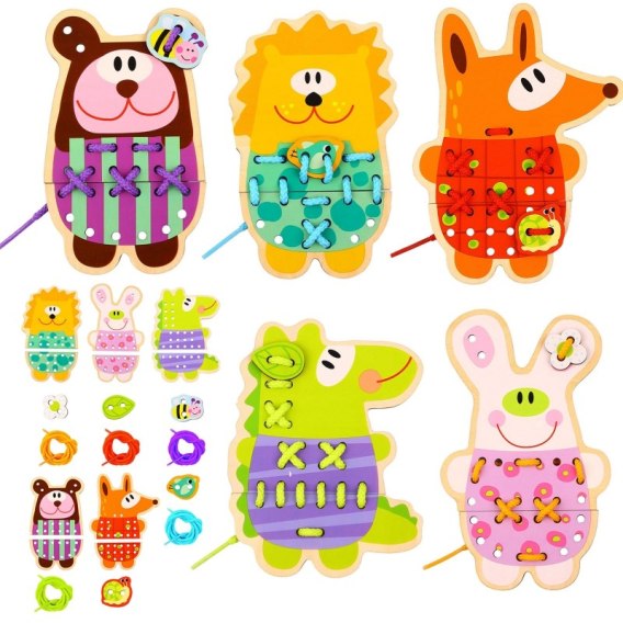 WOOPIE GREEN Drewniana Sznurowanka 5w1 Zwierzątka do Nawlekania