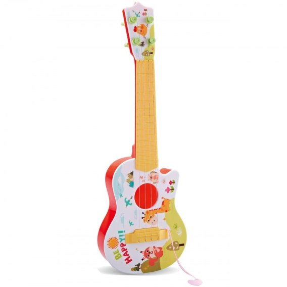 Gitara renomowanej firmy WOOPIE to świetny kolorowy instrument muzyczny dla dzieci w pięknym wzorze zwierzęcym. Instrument pozwala opanować pierwsze akordy, rozwijać pasję, a przy odrobinie cierpliwości i wyobraźni zagrać domowy koncert. Doskonały produkt do przetestowania pierwszych, dziecięcych fascynacji światem muzyki. Małe paluszki ćwiczą się w bieganiu po gryfie, co znacznie poprawia sprawność manualną, uczy koncentracji i wytrwałości. Świetnie imituje prawdziwy instrument. Prawdziwy hit w kategorii zabawa poprzez naukę.