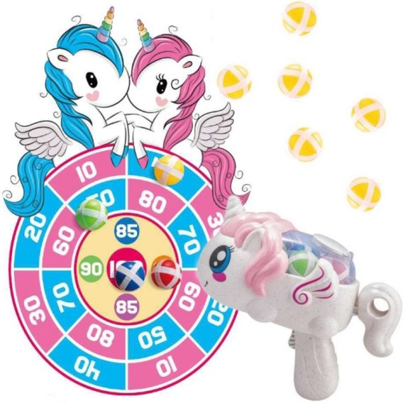Wkrocz do magicznego świata rywalizacji i zręczności z grą zręcznościową od marki Woopie! Ten uroczy zestaw pozwoli Twojemu dziecku rozwijać celność i koordynację w bezpieczny i fascynujący sposób. Wyrzutnia w kształcie uroczego jednorożca strzela specjalnymi kulkami, które magicznie przyklejają się do tarczy dzięki rzepom. Idealna do zabawy w domu i na zewnątrz, zapewniająca godziny wciągającej rozrywki i pomagająca w doskonaleniu precyzji!