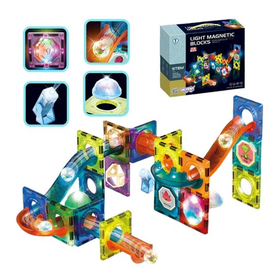 WOOPIE Klocki Magnetyczne Tor Kulkowy Świetlny 49 el.