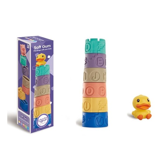 WOOPIE Klocki Sensoryczne Układanka Piramida Do Ściskania Dźwięk Nauka Alfabetu Kaczuszka 7 el.