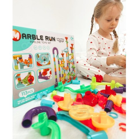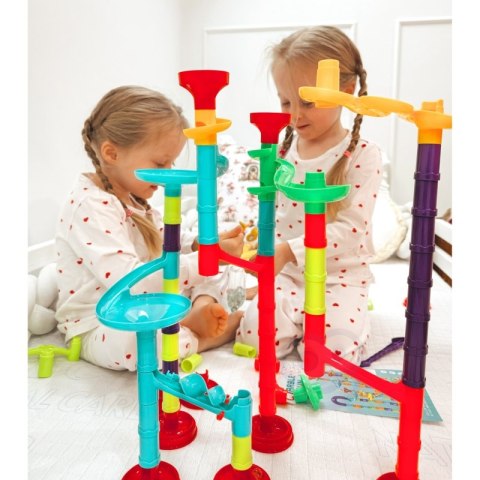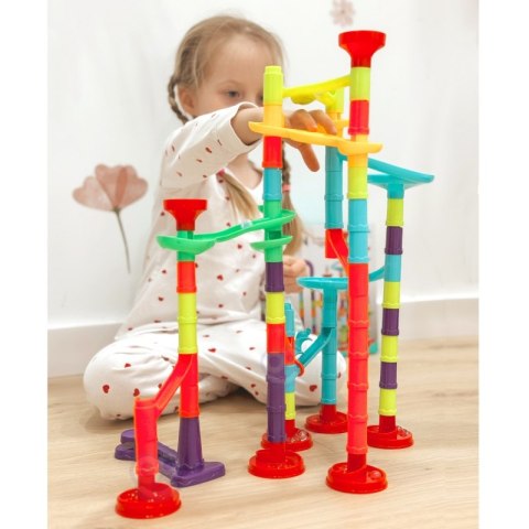 Kulodrom od WOOPIE to spiralny tor zapewniająca niekończącą się zabawę. Ten kolorowy zestaw składa się z wielu różnych kolorowych elementów , które maluch może z łatwością układać jedna na drugiej oraz dowolnie łączyć w wymyślne tory. Dodatkowo z tyłu opakowania znajduję się instrukcja pokazująca przykładowy tor z wykorzystaniem wszystkich elementów. Puszczaj kulki i obserwuj, jak toczą się i huśtają jedna po drugiej. W zestawie jest aż 113 el., w tym np wyrzutnia i kulki do toru. Rozmiar jest odpowiedni dla małych rączek i pomaga rozwijać koordynację wzrokowo-ruchową.