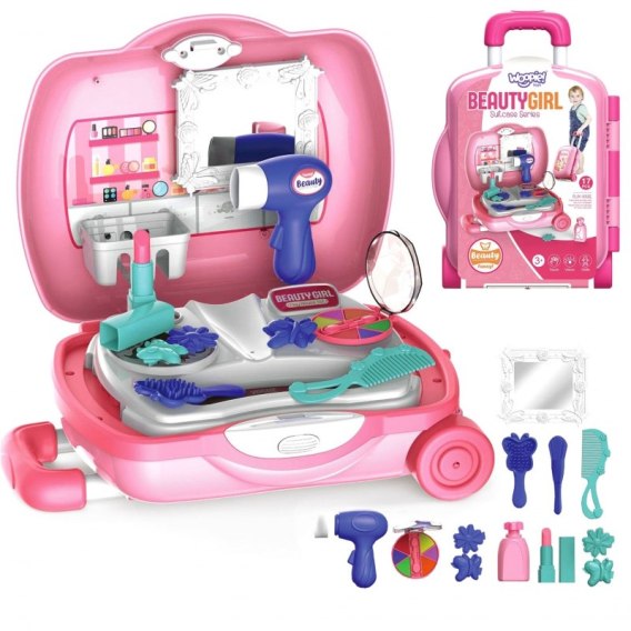 WOOPIE Przenośna Toaletka dla Dziewczynki 2w1 Salon Urody Walizka 17 el.