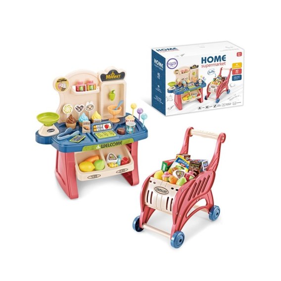 • WOOPIE Sklep Supermarket Wózek na Zakupy Lody Słodycze + 40 Akc.