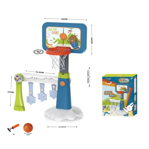 Zestaw sportowy 2w1 koszykówka i bramka marki Woopie jest super połączeniem sportowym dla najmłodszych dzieci! Dziecko może wybrać w co w danej chwili chce zagrać. Dziecko może grać samo w koszykówkę lub z przyjaciółmi w piłkę nożną - nigdy nie będzie się nudzić! W bramce znajduje się tarcza z punktacją, kto ustrzeli największą liczbę punktów - wygrywa. Zestaw na pewno zachęca Twoje dziecko do uprawiania sportu. Aktywność dostarczy twojemu dziecku rozwój tzw. dużej motoryki, co jest idealne dla prawidłowego rozwoju dziecka. Wielkim plusem jest to, że produkt może być używany zarówno w domu jak, i na zewnątrz - Twoje dziecko będzie mogło grać wszędzie bez względu na pogodę. Koszykówka jest wysokości 125 cm - doskonała dla najmłodszych graczy!