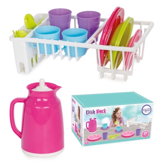 Zestaw akcesoriów kuchennych dla dzieci marki Woopie jest idealnym dopełnieniem dla kuchni maluszka. Zestaw zawiera 21 elementów: zastawę dla 2 osób (talerzyki, sztućce, 2 rodzaje kubków), czajnik na herbatę oraz ociekacza na naczynia po wspaniałej uczcie, aby naczynia mogły wyschnąć po umyciu. Akcesoria idealne na posiłek z przyjacielem!