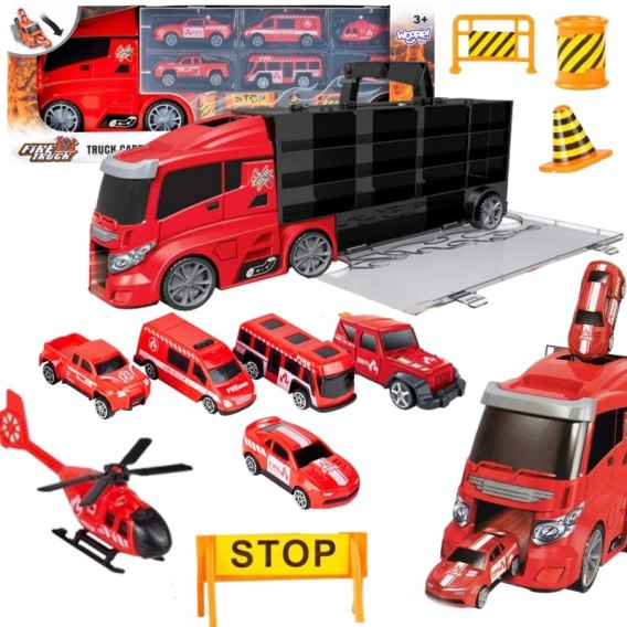 WOOPIE Zestaw Ciężarówka Transporter 3w1 Czerwony 11 el.