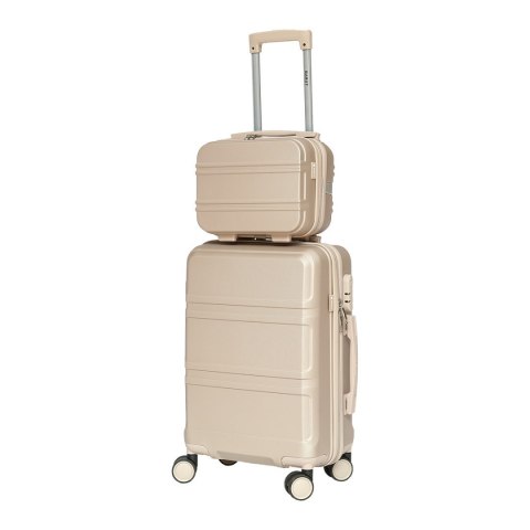 Walizka Kabinowa + kuferek kosmetyczka zestaw Barut beżowa z ABS