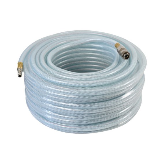 Profesjonalny wąż zbrojony z zakutymi szybkozłączami to niezastąpione narzędzie w każdym warsztacie lub zakładzie produkcyjnym. 50 m długości pozwoli na komfortową pracę, a uniwersalne złącze 1/4" pozwoli na przyłączenie do większości urządzeń pneumatycznych. Wąż powstał z tworzywa PVC co sprawia że jest bardzo odporny na uszkodzenia, niskie i wysokie temperatury a także wysokie ciśnienie nawet do 20 bar.