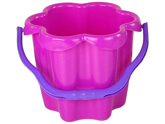 Przedstawiamy małe plastikowe wiaderko w kształcie kwiatka z uchwytem odpowiednie także dla najmniejszych dzieci, do piaskownicy.