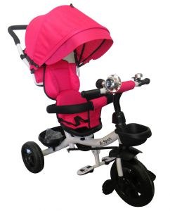 Rowerek trójkołowy dla dzieci, Rowerek sterowany, z rozkładaną budką i z koszykiem tylnym i przednim