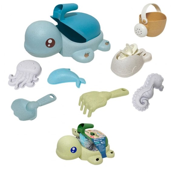 Zestaw do Piasku i Wanny Żółwik od marki WOOPIE z serii WOOPIE GREEN to świetny dodatek do piaskownicy, ogrodu a nawet wanny. Zestaw zawiera 8 elementów: żółwia + gumowe przyssawki, łyżkę, konewkę, 3 foremki, łopatkę i grabki oraz kołowrotek. Wiaderko ma wygodny uchwyt do przenoszenia. Zestaw ma najmodniejszy pastelowy design oraz został wykonany z organicznego i biodegradowalnego (podlegającemu samoistnemu rozkładowi) materiału. Dodatkowo podlega kompostowaniu. Produkt bezpieczny dla dzieci - dezynfekowany w 120 stopniach. Gwarancja super zabawy w piaskownicy, na plaży, w ogrodzie a nawet w wannie! Produkt przyjazny środowisku!