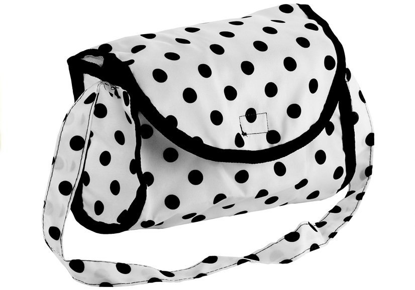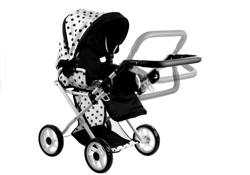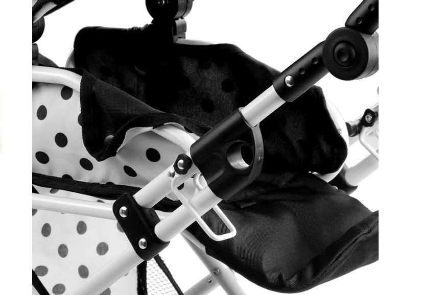 Głęboki wózek dla lalek Alice — biały w czarne groszki