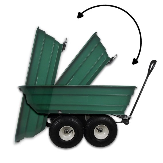 Praktyczny wózek ogrodowy posiada 4 duże pompowane koła, dzięki którym wózek łatwo się prowadzi po każdej nawierzchni. Przednia oś wózka posiada skrętne koła a połączony uchwyt sprawia,że manewrowanie nim jest bardzo płynne nawet z dużym obciążeniem do 240kg. Rączka wózka została wykończona miękką pianką, która zwiększa komfort użytkowania.
