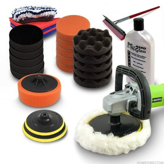 ZESTAW AKCESORIÓW DO POLEROWANIA SAMOCHODU Z PROFESJONALNĄ POLERKĄ 1500W