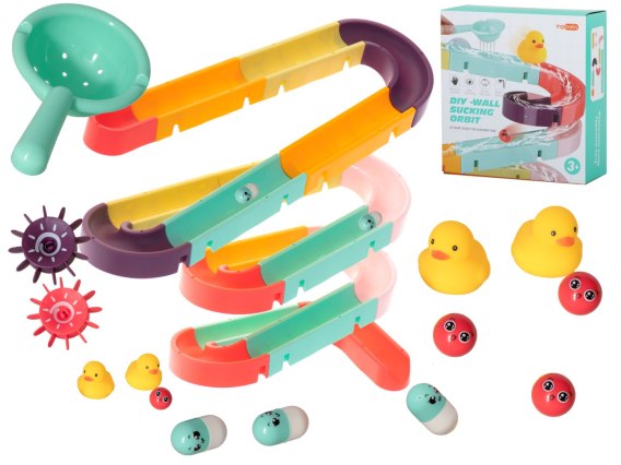 Do zabawki dołączono przyssawki, które ułatwią przymocowanie toru do glazury lub wanny.