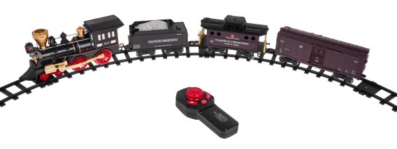 Zestaw retro kolejka zdalnie sterowana z funkcją dymu i odgłosami jazdy a także torami w zestawie to propozycja dla dzieci od 5-go roku życia. Zabawka zasilana jest akumulatorem typu 3,7V (w zestawie), pilot bateriami typu 2 x AA 1,5V (brak w zestawie). Baterie montujemy w wagonie z węglem. Podczas jazdy lokomotywa wypuszcza z komina dym (po wcześniejszym uzupełnieniu jej wodą - pipetka do wody dołączona do zestawu), dodatkowo świeci się światełko zamontowane w części frontowej. Tory posiadają łatwy sposób łączenia, dzięki temu są bezpieczne i wytrzymałe w użytkowaniu. Pilotem możemy kontrolować jazdę kolejki, jej kierunek, szybkość, funkcję pary, dźwięki. Funkcje zestawu: - kolejka zdalnie sterowana, - pilot 2,4 GHz, - jazda do przodu i tyłu, - dym wydobywający się z komina, - reflektor z przodu lokomotywy, - odgłosy jazdy. |