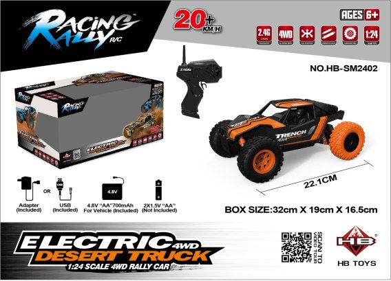 Zdalnie sterowany Crawler Desert z napędem na cztery koła i gumowymi oponami to propozycja dla dzieci od 6-go roku życia. Pojazd wykonano w skali 1:24, maksymalna prędkość jazdy do 20 km/h. Samochód świetnie sprawdzi się do jazdy po nierównym terenie, gdyż posiada amortyzowane zawieszenie, gumowe opony i napęd na cztery koła. Pojazd zasilany jest akumulatorem typu 4,8V 700mAh (bateria w zestawie), pilot bateriami typu 2 x AA 1,5V (brak w zestawie). Specyfikacja: - skala 1:24, - jeździ we wszystkich kierunkach (przód, tył, prawo, lewo, wspina się), - pilot zdalnej kontroli 2.4GHz, - maksymalna prędkość jazdy 20 km/h, - amortyzowane zawieszenie, - gumowe opony, - napęd na cztery koła, - regulacja skrętu, - metalowa karoseria. |