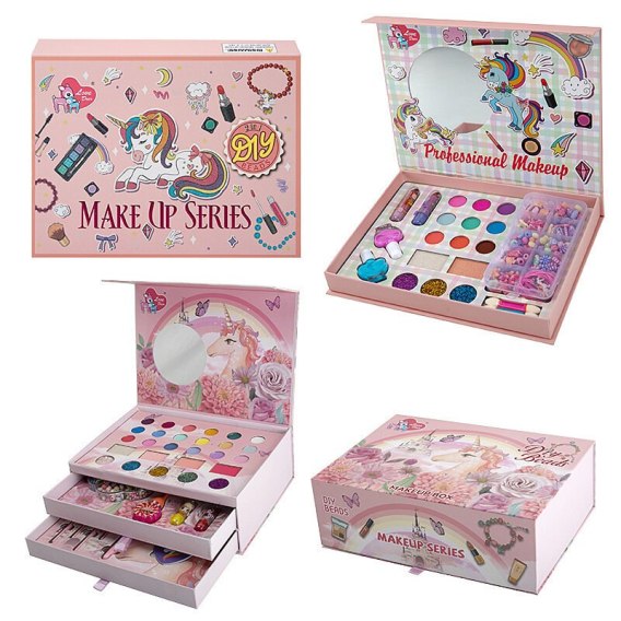 Szkatułka jest zarówno praktyczna, jak i piękna. Wyposażona jest w lusterko i trzy piętra, w tym dwie szuflady, co pozwala na przechowywanie wszystkich akcesoriów w jednym miejscu. Całość jest ozdobiona motywem jednorożca, co z pewnością przypadnie do gustu małym marzycielkom.