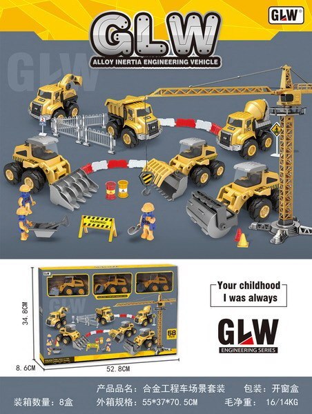 Zestaw 6 Metalowych Pojazdów Budowlanych + Mata Plac Budowy dla dzieci 3+ Akcesoria 58 el.
