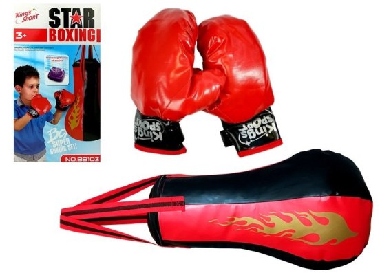 Jeżeli Twoje dziecko jest zainteresowanie sportem to nie ma na co czekać. Doskonałym prezentem będzie zestaw bokserski. Świetna zabawa i niezapomniany trening w jednym. Zestaw rozwija koordynację ruchową, szybkość, zwinność i zdolność uników. Wyszczupla sylwetkę, świetnie poprawia motorykę i szybkość dziecka. Zestaw treningowy do boksowania składający się z worka bokserskiego i rękawic. Dołączone rękawice są w rozmiarze uniwersalnym, pasujące na dziecięcą rękę. Zestaw utrzymany jest w kolorystyce czarno-czerwonej z pięknymi dodatkami żółtego. Zestaw jest uniwersalny, sprawdzi się zarówno dla dziewczynek, jak i chłopców.