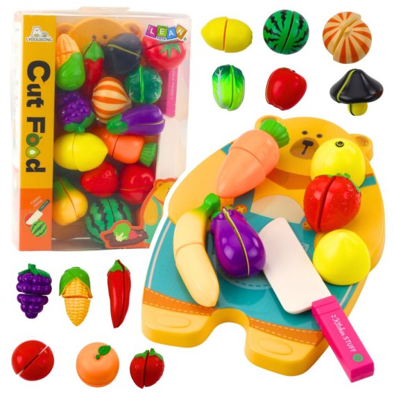 Zestaw do krojenia owoców i warzyw to doskonała zabawka edukacyjna, która wprowadza dzieci w świat kulinarnych przygód. Dzięki kolorowym elementom dziecko może odgrywać rolę kucharza, kroić produkty i tworzyć własne potrawy. Wszystkie warzywa i owoce wykonane są z bezpiecznego tworzywa i składają się z połówek połączonych rzepem, co pozwala na wielokrotne krojenie i ponowne składanie.