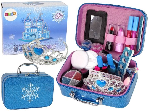 Zestaw do makijażu z kufrem w kształcie płatka śniegu - rozwija kreatywność, bezpieczne kosmetyki do zmycia mydłem i wodą. Idealny prezent.