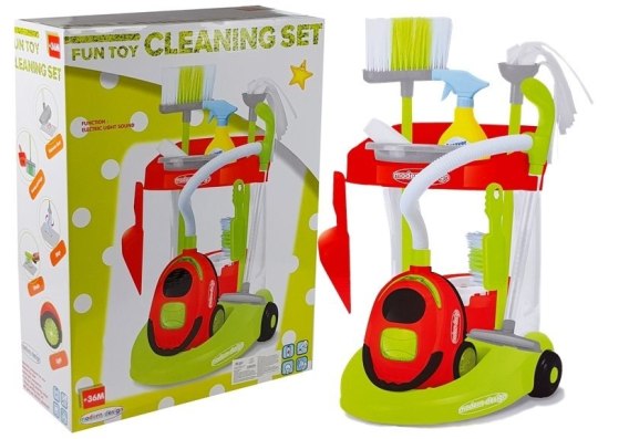 Prezentowany wózeczek z akcesoriami to wysoce profesjonalny zestaw dla każdego malucha, który lubi pomagać rodzicom podczas wykonywania codziennych obowiązków, jakimi są porządki w domu. Dziecięca konstrukcja i kolorystyka zestawu sprawi, że wózeczek będzie bardzo pomocny podczas przyuczania dziecka do samodzielnego dbania o czystość we własnym pokoju. Dzięki niemu w prosty sposób można połączyć przyjemną zabawę z pożytecznym zadaniem, co z pewnością zaowocuje w przyszłości. Dużą zaletą zestawu są rewelacyjne akcesoria, będące wierną kopią ich pełnowymiarowych wzorców, dzięki czemu dziecko może poczuć się samodzielniej i doroślej, sprzątając razem z pozostałymi domownikami.