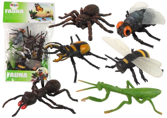 ⭐ Zestaw 6 Figurek Owadów - Pająk, Pszczoła, Mucha, Karaluch, Mrówka, Modliszka ⭐