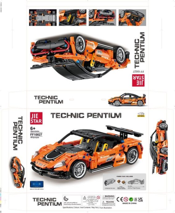 Zestaw 491 klocków konstrukcyjnych do samodzielnej budowy pomarańczowego samochodu sportowego z funkcją zdalnego sterowania. Zabawka przeznaczona dla dzieci od 6-go roku życia. Klocki i elementy autka wykonane zostały z wysokiej jakości tworzywa sztucznego. Auto posiada ruchome elementy, jak otwierane drzwi i maskę. Samochód steruje się zdalnie za pomocą pilota RC z zestawu lub dedykowanej aplikacji mobilnej. Pilot działa na niezawodnej częstotliwości 2,4 GHz. W zestawie dołączono instrukcję obrazkową. Układanie klocków konstrukcyjnych rozwija u dzieci zdolności manualne, wyobraźnię przestrzenną i cierpliwość. Autko zasilane jest akumulatorem 7,4V (w zestawie), pilot jest zasilany bateriami 2 x AAA 1,5V (brak w zestawie). Specyfikacja: - zestaw 491 klocków konstrukcyjnych, - zdalne sterowanie we wszystkich kierunkach (przód-tył-prawo-lewo), za pomocą pilota RC lub aplikacji mobilnej, - pilot działa na częstotliwości 2,4 GHz, - ręcznie otwierane drzwi i maska, - wierne odwzorowanie prawdziwego samochodu, - przeznaczony dla dzieci od 6-go roku życia, - możliwość ozdobienia auta naklejkami z zestawu, - instrukcja obrazkowa w zestawie. |