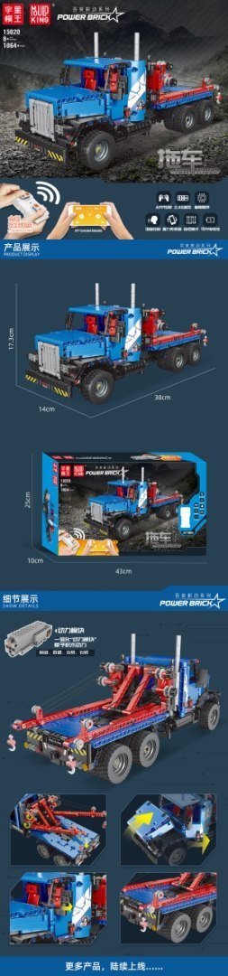 Zestaw 1064 klocków konstrukcyjnych do samodzielnej budowy niebieskiej ciężarówki z funkcją zdalnego sterowania. Zabawka przeznaczona dla dzieci od 8-go roku życia. Klocki i elementy ciężarówki wykonane zostały z wysokiej jakości tworzywa sztucznego. Ciężarówką steruje się zdalnie za pomocą pilota RC z zestawu lub dedykowanej aplikacji mobilnej. Model posiada napęd na 4 koła. Ciężarówka ma wiele ruchomych elementów, jak otwierana maska i drzwi do kabiny kierowcy oraz ruchome lusterka. Dodatkowo, jest możliwość podnoszenia i opuszczania wysięgników oraz haka holowniczego. W zestawie dołączono instrukcję obrazkową. Układanie klocków konstrukcyjnych rozwija u dzieci zdolności manualne, wyobraźnię przestrzenną i cierpliwość. Bolid zasilany jest akumulatorem 3,7V (w zestawie), pilot jest zasilany bateriami 2 x AAA 1,5V (brak w zestawie). Specyfikacja: - zestaw 1064 klocków konstrukcyjnych, - zdalne sterowanie we wszystkich kierunkach (przód-tył-prawo-lewo), za pomocą pilota RC lub aplikacji mobilnej, - napęd na 4 koła, - ręcznie otwierana maska i drzwi kabiny, - ruchome lusterka, - ruchome wysięgniki i hak holowniczy (góra-dół), - wierne odwzorowanie prawdziwej ciężarówki, - przeznaczony dla dzieci od 8-go roku życia, - instrukcja obrazkowa w zestawie. |