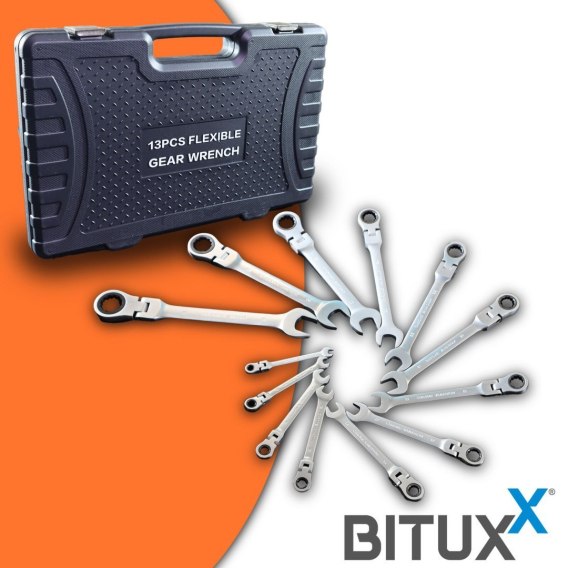 Bituxx zestaw 13-częściowych elastycznych kluczy oczkowych z grzechotką - wysokiej jakości, solidny i elastyczny w użyciu