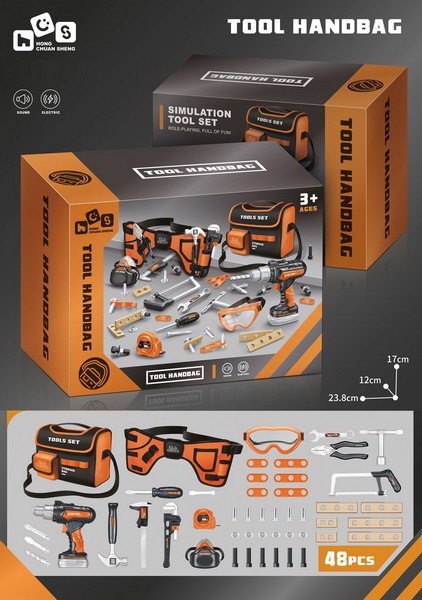 Fantastycznie wykonany zestaw majsterkowicza z wkrętarko - wiertarką , pasem i torbą na narzędzia to propozycja dla dzieci od 3-go roku życia. Wkrętarka nie dość, że wygląda jak prawdziwa, to również działa. Posiada wymienne bity, które można dowolnie zmieniać, a dzięki dwóm kierunkom obrotu, można nią wkręcać i wykręcać. Dodatkowo we wkrętarce można wyjmować akumulator jak w narzędziach dla dorosłych. Zasilana jest bateriami typu 2 x AA 1,5V (brak w zestawie). Prócz wkrętarki zestaw zawiera również narzędzia do majsterkowania takie jak śrubokręt z wymiennymi końcówkami, miarka kątowa, klucze, śrubki, elementy do wkręcania. Po skończonej zabawie wszystkie narzędzia możemy schować do torby. Torba prócz głównej komory zapinanej na rzepy zawiera również małą kieszonkę na przodzie oraz przeszycie, w które można włożyć np. śrubokręt. Torbę wyposażono w pasek na ramię.