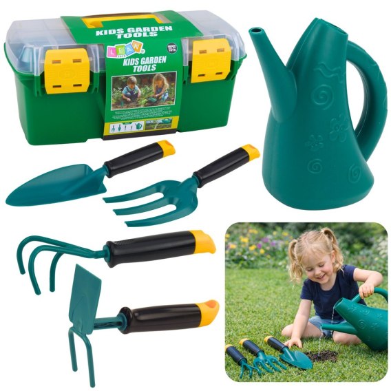 Komplet składa się z 6 elementów, które umożliwiają odgrywanie realistycznych scenek ogrodowych. Narzędzia zostały wykonane z trwałego tworzywa sztucznego, dzięki czemu są lekkie, wygodne w użytkowaniu i odporne na uszkodzenia. Ergonomiczne uchwyty zapewniają komfort podczas zabawy, a odpowiednie rozmiary sprawiają, że zestaw jest w pełni dostosowany do potrzeb dziecka.
