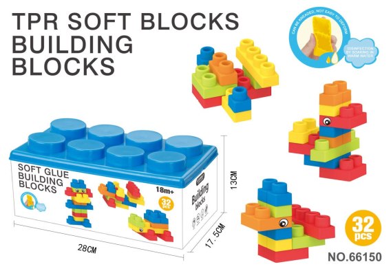 Zestaw kolorowych miękkich klocków dla dzieci od osiemnastego miesiąca życia. Zestaw wykonano z bezpiecznego dla dzieci i środowiska materiału PVC. Klocki są lekkie i nie posiadają ostrych zakończeń. Bardzo łatwo je utrzymać w czystości, po wyparzeniu, nie tracą kolorów. Klocuszki możemy dowolnie wyginać, a po wygięciu wracają do swojego poprzedniego kształtu.