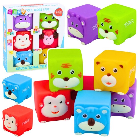 - 6 miękkich klocków w kształcie zwierzątek