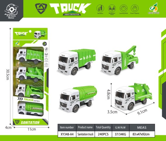 Zestaw pojazdów służ zieleni dla dzieci od trzeciego roku życia. Pojazdy wykonane zostały z najlepszej jakości materiałów z dbałością o szczegóły w żywych kolorach zachęcających dziecko do zabawy. Wiernie odwzorowują te duże, znane z ulic miast. Pojazdy posiadają ruchome elementy i są niewielkiego gabarytu, co sprawia, że można je zabrać wszędzie ze sobą. W zestawie znajduje się śmieciarka, auto do przewozu gruz, cysterna i autko z wysięgnikiem.