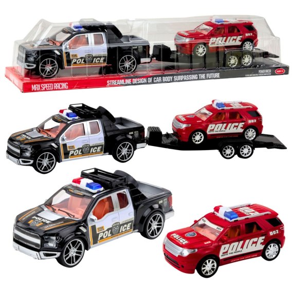 Zestaw Samochód Policyjny Terenowy Z Lawetą i Radiowozem