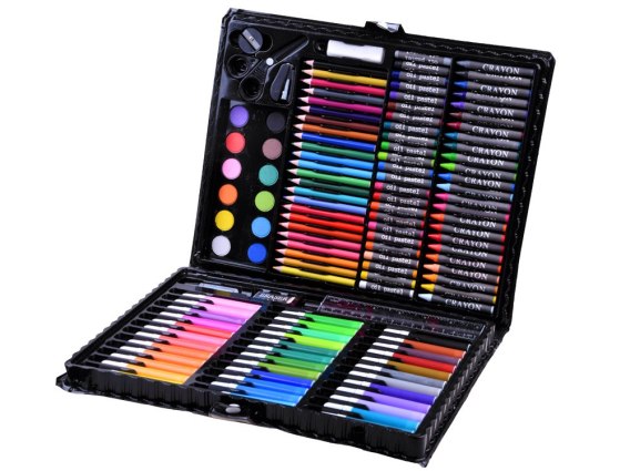 Duży zestaw plastyczny artystyczny kreatywny do malowania piórnik z wyposażeniem kredki pisaki