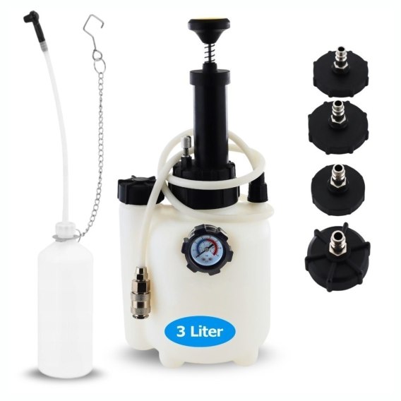 W zestawie 1-litrowy zbiornik na zużyty płyn hamulcowy dla czystego odbioru starego płynu