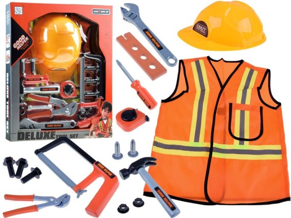 Fantastyczny zestaw dla małego budowniczego kamizelka + narzędzia to idealny strój, który sprawdzi się podczas domowych zabaw lub balu karnawałowego. Dzięki odblaskowej kamizelce oraz dodatkom można skompletować naprawdę świetną kreację do zabawy w majsterkowicza. Kamizelka została wykonana w całości z materiału, z dbałością o najmniejszy szczegół, dzięki czemu sprawdzi się na niejednym balu.