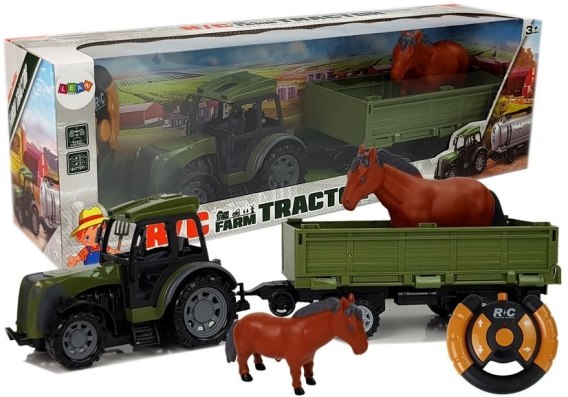 Traktor kolorystycznie odwzorowuje jego przeznaczenie, dodatkowo posiada odpinaną przyczepę, w której może przewozić figurki zwierząt lub inne akcesoria wykorzystywane na farmie. Przyczepa jest niska i posiada otwieraną tylna rampą. Oprócz przyczepy w zestawie znajduje się figurka brązowego konika. Bez problemu może przewieźć go z miejsca na miejsce np. do stworzonej przez siebie stajni. Tą przyczepą może również przewozić inne akcesoria. Zabawa nauczy malucha precyzji, ale i rozwinie jego wyobraźnie. Będzie tworzyć różne scenariusze, a do zabawy zaangażuje bliskich.