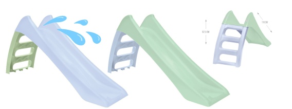Dzięki swej konstrukcji i bardzo łatwemu montażowi zjeżdżalnię można zabrać ze sobą w dowolnie wybrane miejsce .Szeroki ślizg i solidne podparcie zapewniają stabilność zjeżdżalni. Opcjonalnie można podłączyć natrysk wody do na zjazd, podłączenie wody za pomocą węża ogrodowego od dołu zjeżdżalni. Zjeżdżalnia posiada antypoślizgowe stopnie gwarantujące bezpieczeństwo podczas wchodzenia, nie mniej jednak zabawa powinna odbywać się pod nadzorem osoby dorosłej.